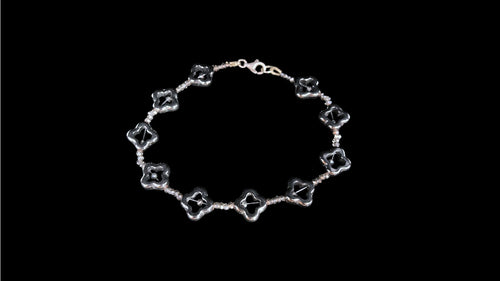 Custom Salt & Pepper Horsehair Bracelet with Rhinestone and Horse Head End Caps